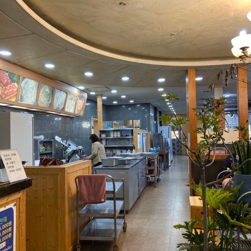 오른쪽에는 사진과 같이 식당이 있습니다. 고기도 구워 먹을 수 있으며, 청국장이 참 맛있엇네요~